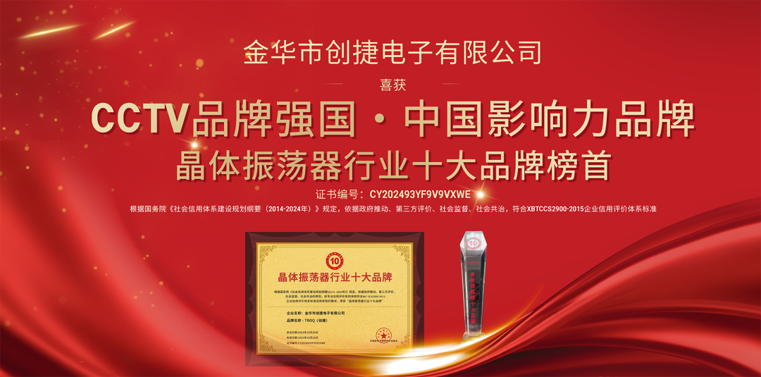 實(shí)力認(rèn)證!TROQ創(chuàng)捷電子榮獲CCTV品牌強(qiáng)國(guó)·中國(guó)品牌創(chuàng)新成果-中國(guó)晶體振蕩器十大品牌榜首