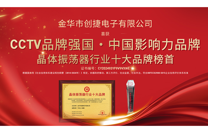 近日,CCTV品牌強國示范工程發(fā)布了中國十大品牌·晶體振蕩器行業(yè)創(chuàng)新成果評選,金華市創(chuàng)捷電子有限公司(以下簡稱TROQ創(chuàng)捷電子)以1557790票位居榜首,展現(xiàn)出蓬勃的品牌影響力
