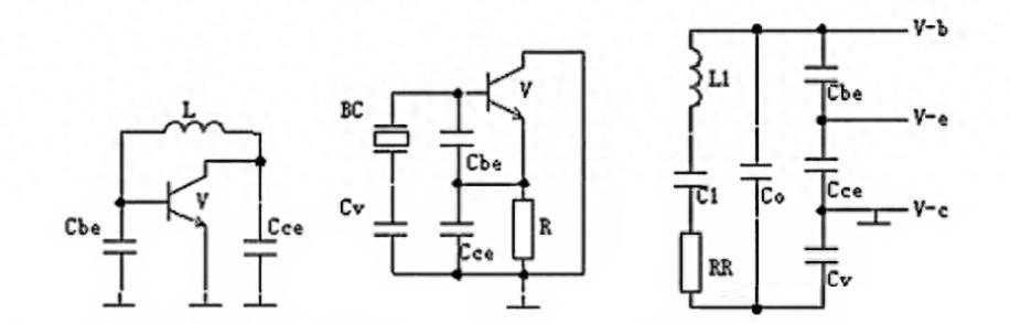 石英晶振一般采用三端式(考畢茲) 交流等效振蕩電路;實際的晶振交流等效電路中,其中Cv是用來調節(jié)振蕩頻率,一般用變容二極管加上不同的反偏電壓來實現(xiàn),這也是壓控作用的機理;把晶體的等效電路代替晶體后。其中Co,C1,L1,RR是晶體的等效電路。