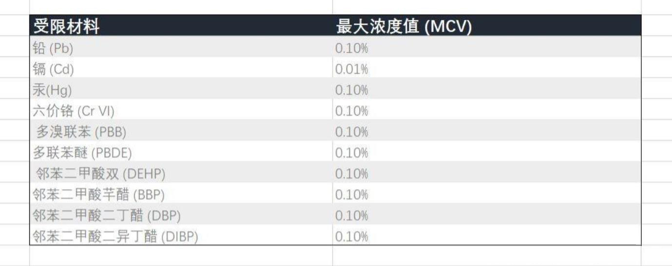 RoHS標(biāo)準(zhǔn)主要限制了以下有害物質(zhì):鉛、汞、鎘、六價鉻、多溴聯(lián)苯和多溴二苯醚。這些物質(zhì)對人體健康和生態(tài)環(huán)境具有極大的危害性。例如,鉛和汞會影響神經(jīng)系統(tǒng),鎘和六價鉻會對呼吸系統(tǒng)和消化系統(tǒng)造成損害,多溴聯(lián)苯和多溴二苯醚則具有致癌性。